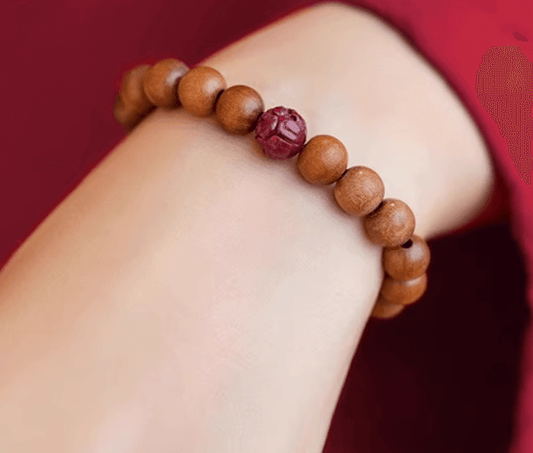 The peach wood bracelet consecrated by a master comes from Mount Wutai.