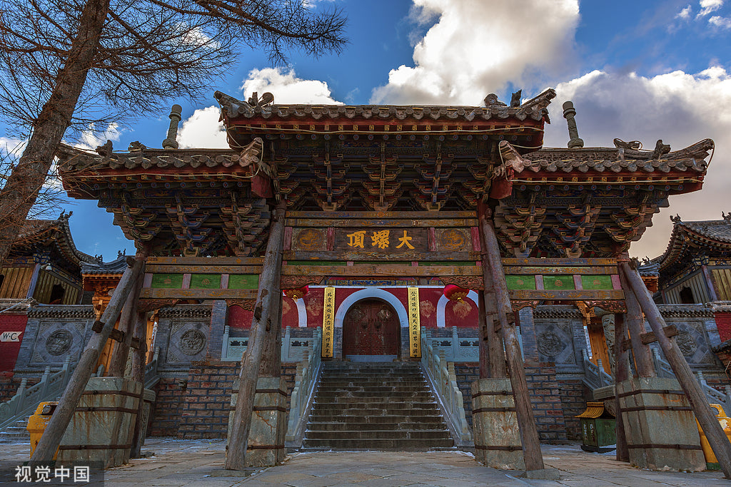 Located in northeastern Shanxi Province, Mount Wutai is the foremost of China's Four Sacred Buddhist Mountains and is revered as the bodhimaṇḍa of Mañjuśrī. Named after its five flat peaks, with the highest reaching 3,061 meters, it's known as the "Roof of North China."